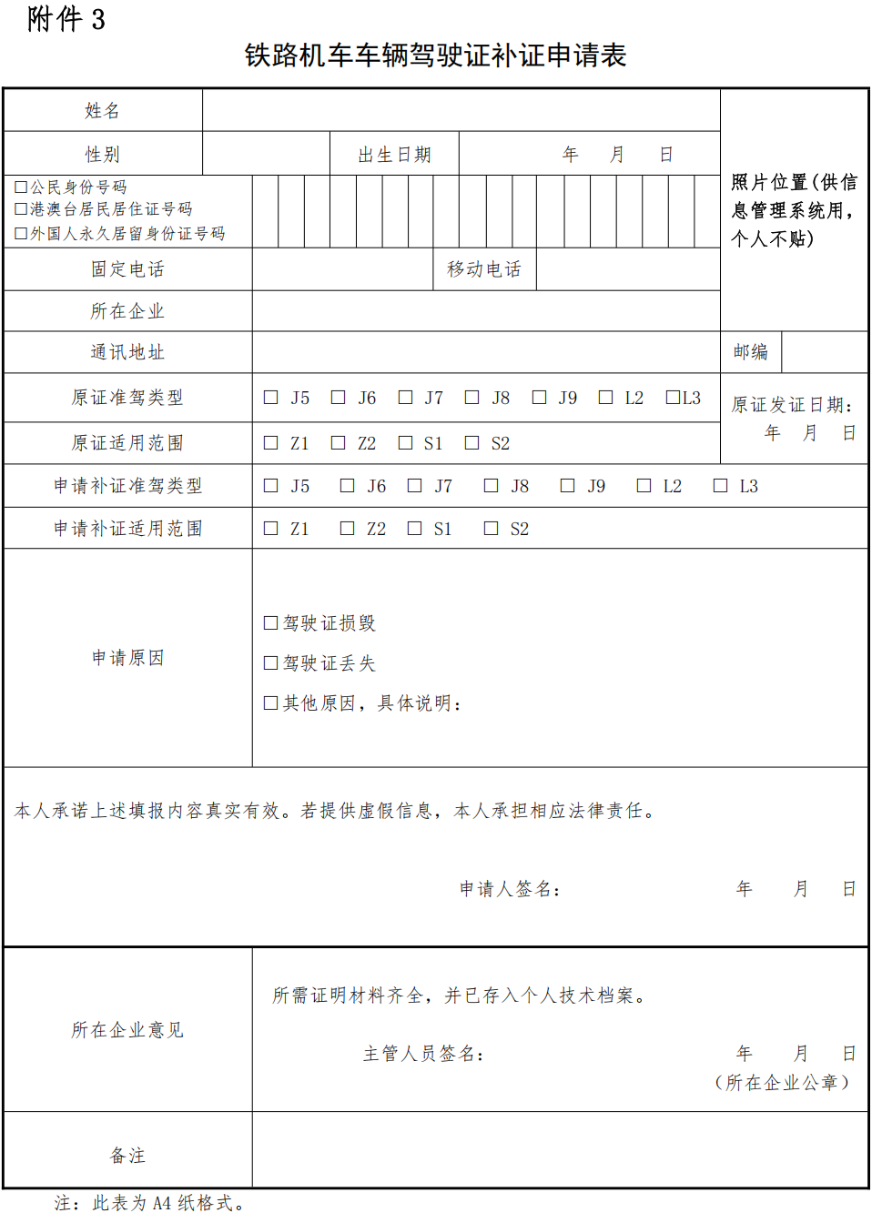 申請補發駕駛證的,應當按照信息管理系統要求提交《鐵路機車車輛駕駛證補證申請表》(附件3)。