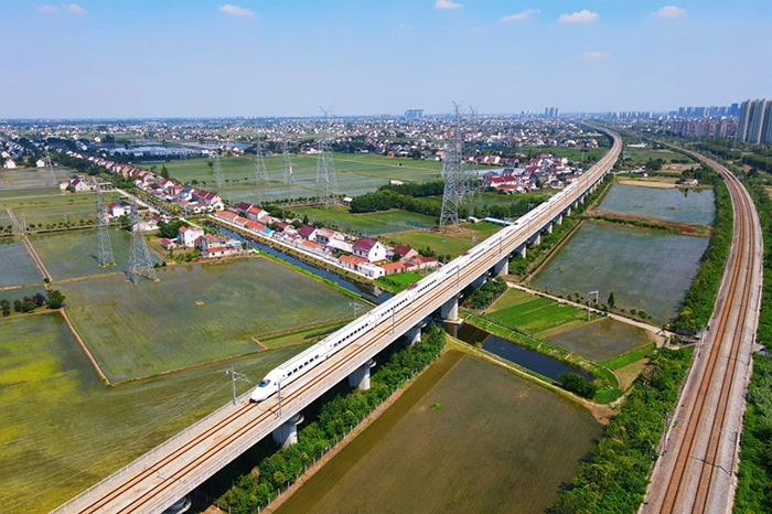 7月1日,列車在江蘇省南通市通州區(qū)境內(nèi)行駛。