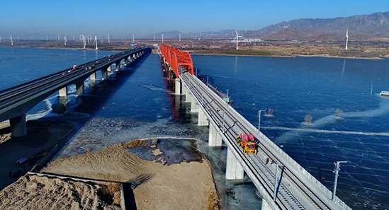 京張高鐵官廳水庫特大橋鋪軌