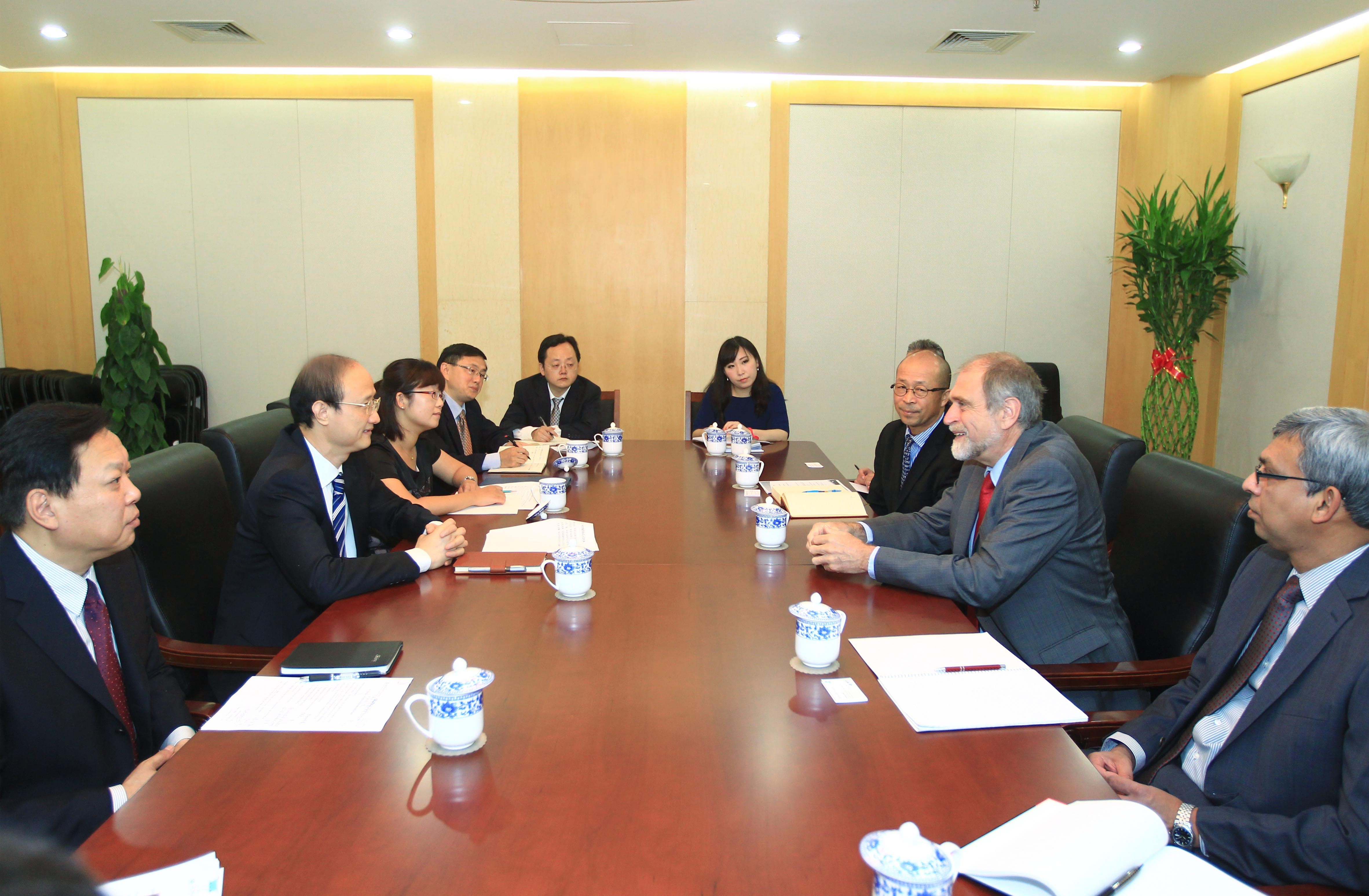 6月11日,國家鐵路局黨組成員鄭健(左二)在北京會見中國工程院外籍院士、美國工程院院士、澳大利亞蒙納士大學常務副校長塞泊(右二)一行,雙方就鐵路技術標準等問題進行了交流座談。