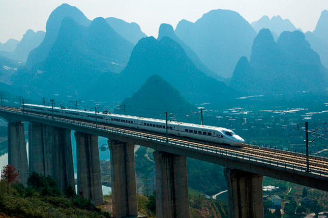 高鐵動車組行駛在貴廣高鐵陽朔段