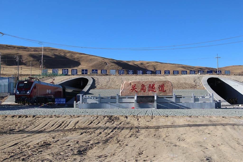 “關角”藏語意為“登天的梯”。新關角隧道最高海拔3497.45米,全長32.645公里,是青藏鐵路西(寧)格(爾木)二線控制性工程。隧道位于青海省天峻縣和烏蘭縣境內的關角山,青藏鐵路天棚站至察汗諾站之間,設計時速160公里。