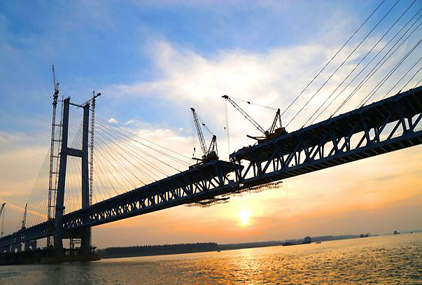 12月3日10時28分,隨著最后一塊橋面板精確吊裝到位,湖北荊州長江公鐵特大橋主跨鋼梁順利合龍。該橋是國內首座跨越長江的重載鐵路橋,也是蒙(西)華(中)煤運大通道率先取得突破性進展的重要控制性工程。大橋全長6318米,上層為雙向6車道公路,下層為雙線重載鐵路。主橋為雙塔鋼桁梁斜拉橋,牽引荷載5000噸,預留1萬噸,是普通貨運鐵路荷載量的2至3倍。