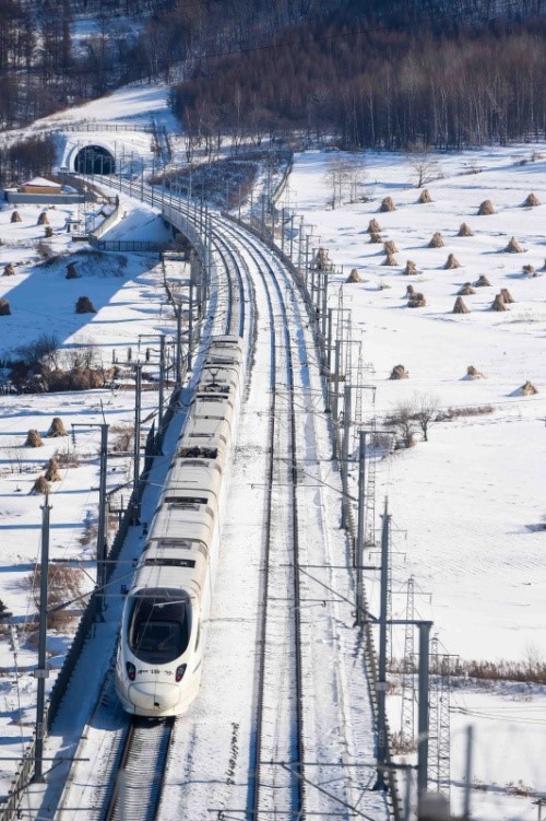 1月26日,高鐵列車駛出拉法山附近的雙廟子隧道。