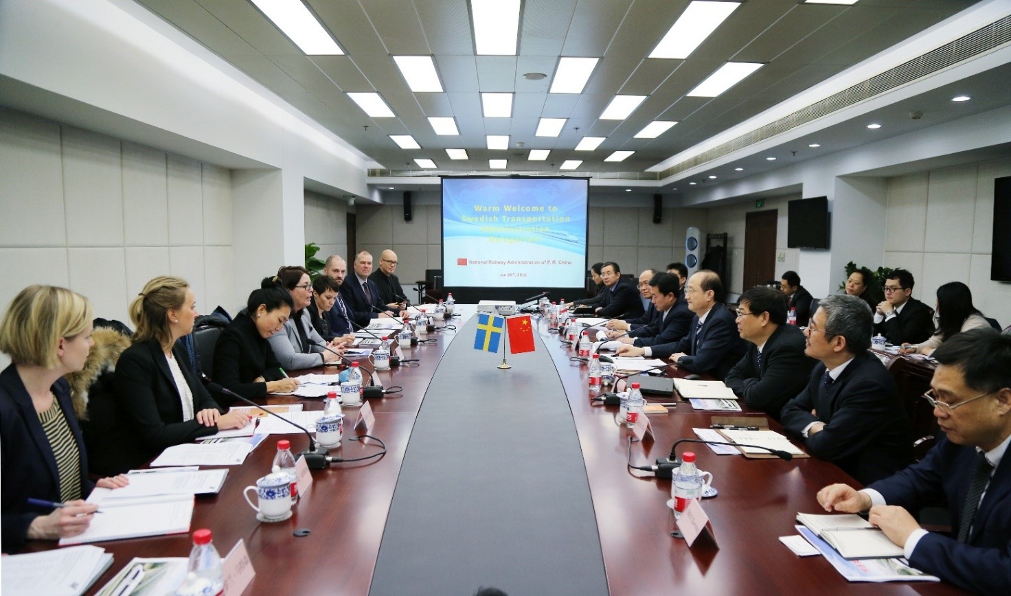 1月28日,國家鐵路局黨組成員鄭健在北京主持召開中國-瑞典鐵路交流座談會(huì)。國家鐵路局、國家開發(fā)銀行、中國鐵建股份有限公司、中國中車股份有限公司、中鐵第四勘察設(shè)計(jì)院集團(tuán)公司代表與瑞典交通管理署、瑞典投資貿(mào)易委員會(huì)和瑞典駐華使館代表就高速鐵路規(guī)劃設(shè)計(jì)、技術(shù)標(biāo)準(zhǔn)、施工建造、裝備制造、經(jīng)濟(jì)社會(huì)效益等問題進(jìn)行了深入的交流。