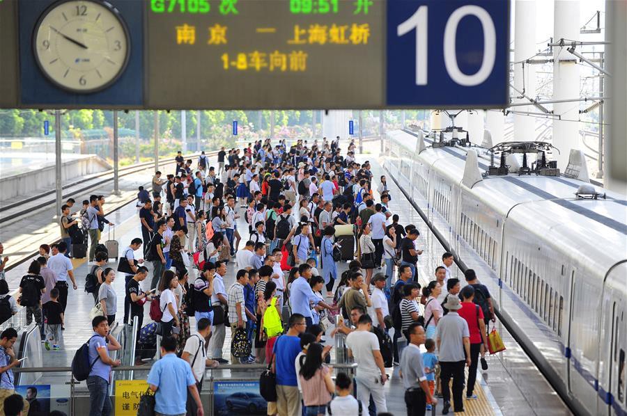 8月31日,為期兩個月的全國鐵路暑運落下帷幕。暑期運輸總體安全平穩。全國鐵路累計發送旅客5.5億人次,同比增加4608萬人次,增長9.1%;全國鐵路日均安排開行旅客列車6867列,同比增加944列,增長16%。圖為8月31日,旅客在無錫火車站準備乘車。還月亮 攝(圖片來源:新華社)
