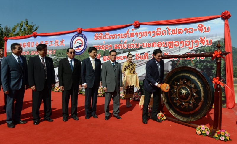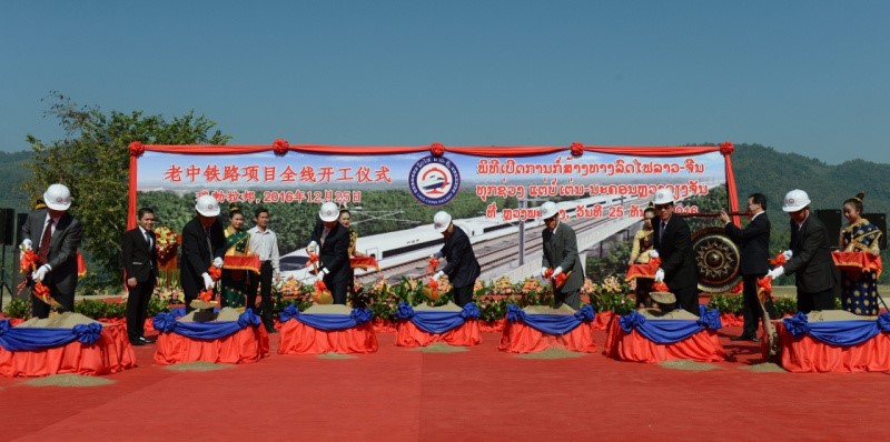 12月25日,中老鐵路全線開工儀式在老撾瑯勃拉邦舉行,老撾總理通倫和中國駐老撾大使關華兵等出席開工儀式。中老鐵路北起兩國邊境磨憨—磨丁口岸,南至萬象,全長417公里,為Ⅰ級單線鐵路,設計時速160公里/小時,預計建設期為5年。中老鐵路建成后將與中國鐵路網直接連通,對中國與東盟鐵路互聯互通具有重要意義。圖為開工儀式現場。