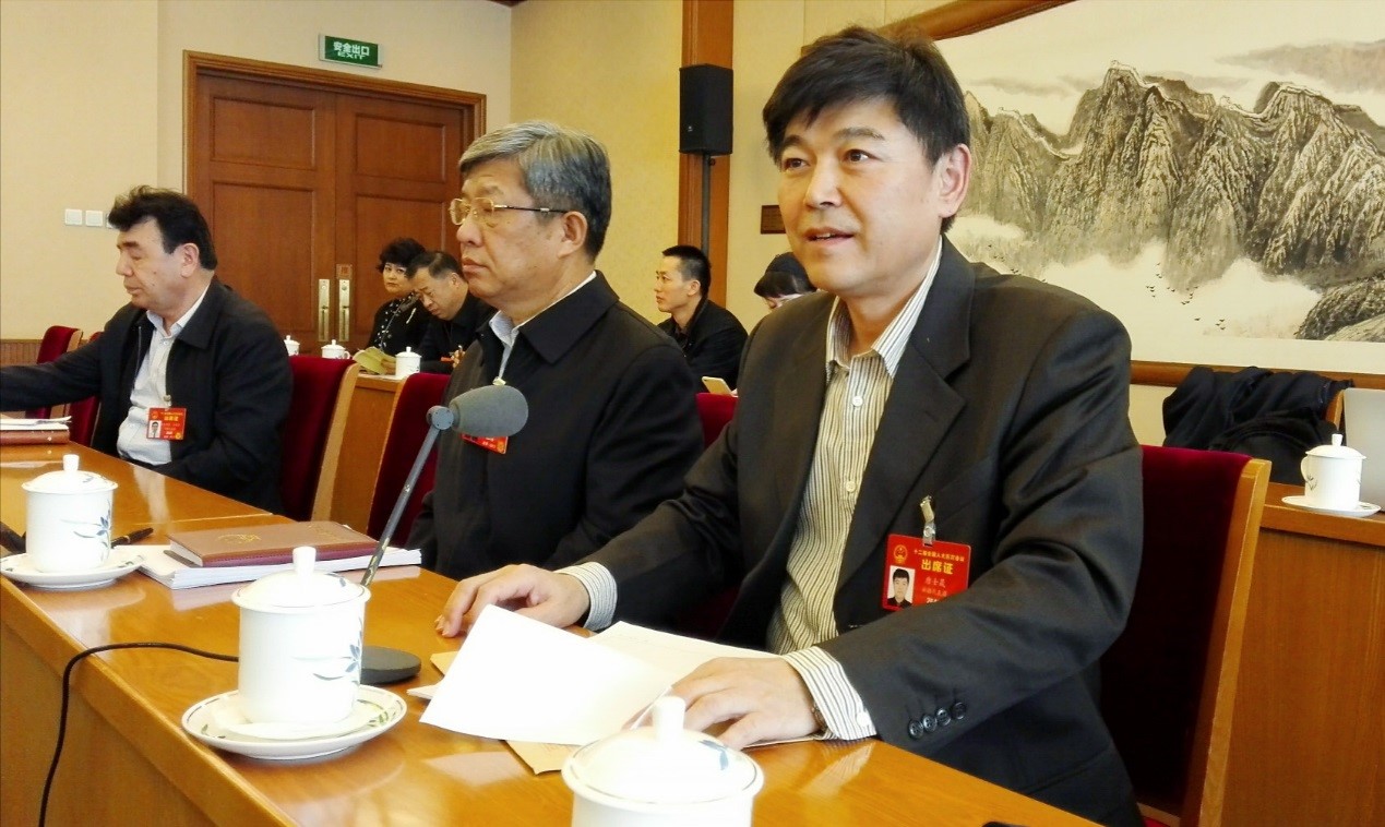 全國(guó)人大代表、國(guó)家鐵路局上海鐵路監(jiān)管局局長(zhǎng)唐士晟在參加第十二屆全國(guó)人民代表大會(huì)第五次會(huì)議期間,認(rèn)真學(xué)習(xí)、審議李克強(qiáng)總理所作政府工作報(bào)告。圍繞加快新疆物流業(yè)建設(shè),促進(jìn)新疆經(jīng)濟(jì)社會(huì)更快發(fā)展,推動(dòng)國(guó)家全面開放和“一帶一路”倡議向大會(huì)提交了建議。圖為全國(guó)人大代表、上海鐵路監(jiān)督管理局局長(zhǎng)唐士晟(右)參加新疆代表團(tuán)審議《政府工作報(bào)告》。