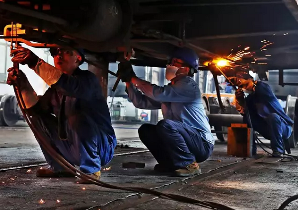 南京東車輛段職工按標作業、精檢細修。(圖片來源:上海鐵路局)