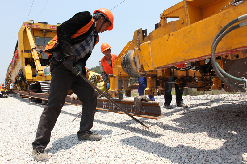 目前,中老鐵路國內段鐵軌鋪設施工正忙,在云南省西雙版納傣族自治州景洪市大渡崗鄉大荒壩村,承擔鋪軌任務的中鐵一局工人晝夜施工,加緊向前推進。