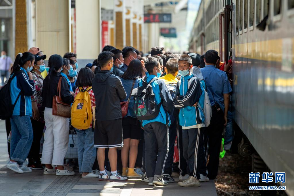 放學的學生和其他旅客在成昆鐵路西昌站準備乘坐5634次列車回家。