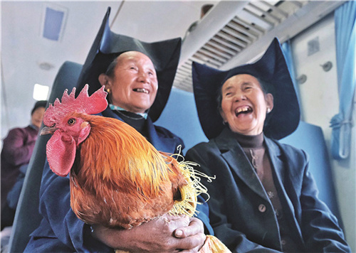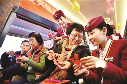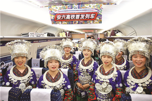 少數民族旅客載歌載舞慶祝高鐵開通運營。