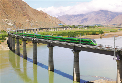 復興號高原內電雙源動車組駛出拉薩站,向林芝市進發。