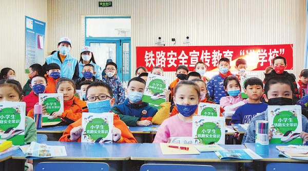 哈爾濱局集團公司團委組織“小藍鴿”志愿者通過發放《小學生鐵路安全常識》教育讀本、播放宣傳教育動畫、安全知識互動等形式,增強中小學生愛路護路安全意識。