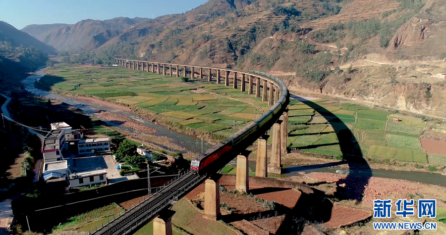 云南省楚雄州祿豐市,一列綠皮火車行駛在成昆線上。