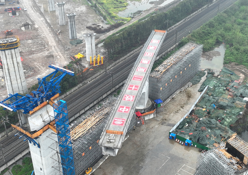 4月2日,滬渝蓉高鐵武宜段漢口至漢川東西南下行聯絡線跨漢丹鐵路特大橋開始進行轉體。跨漢丹鐵路特大橋轉體結構呈“T字型”,長113.5米,寬7.1米,總重量超6000噸,是滬渝蓉高鐵武宜段漢口至漢川東段重難點控制性工程之一。滬渝蓉高鐵是國家“八縱八橫”高速鐵路規劃中沿江通道的關鍵區段,橫貫國內6個省市,串聯起長三角城市群、長江中游城市群和成渝雙城經濟圈,對完善長江綜合立體交通運輸體系和推進長江經濟帶發展具有重大意義。