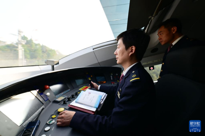 10月11日,高鐵司機(jī)駕駛宣績高鐵首發(fā)列車G9298次行駛在線路上。