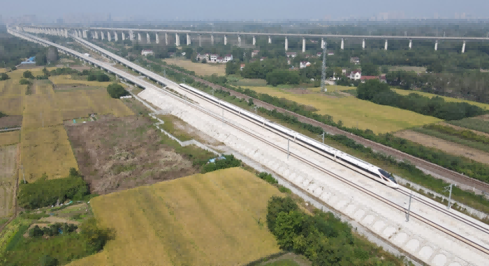 列車行駛在宣績高鐵線路上。