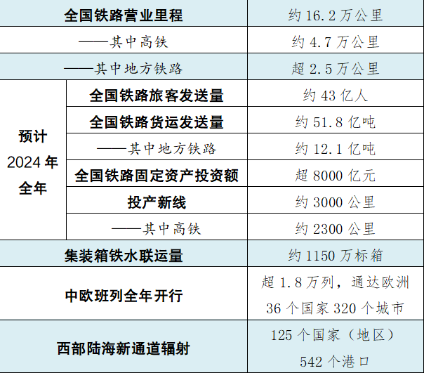 ——運輸保障能力持續增強。預計2024年全年,全國地方鐵路貨物發送量達12.1億噸,同比增長4.5%左右,全國鐵路貨運發送量的23.4%。