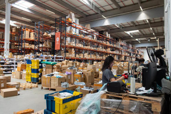 走進(jìn)千象盒子的物流倉(cāng),成排的貨柜上擺滿了商品,工人正在準(zhǔn)備出庫(kù)的訂單。“物流倉(cāng)占地12000平方米,每天平均發(fā)單量6000余件,通過(guò)與當(dāng)?shù)乜爝f公司合作,保證西班牙國(guó)內(nèi)的買(mǎi)家從下單到收件兩天內(nèi)完成。”千象盒子科技倉(cāng)儲(chǔ)深圳有限公司董事長(zhǎng)牟錦文說(shuō)。
