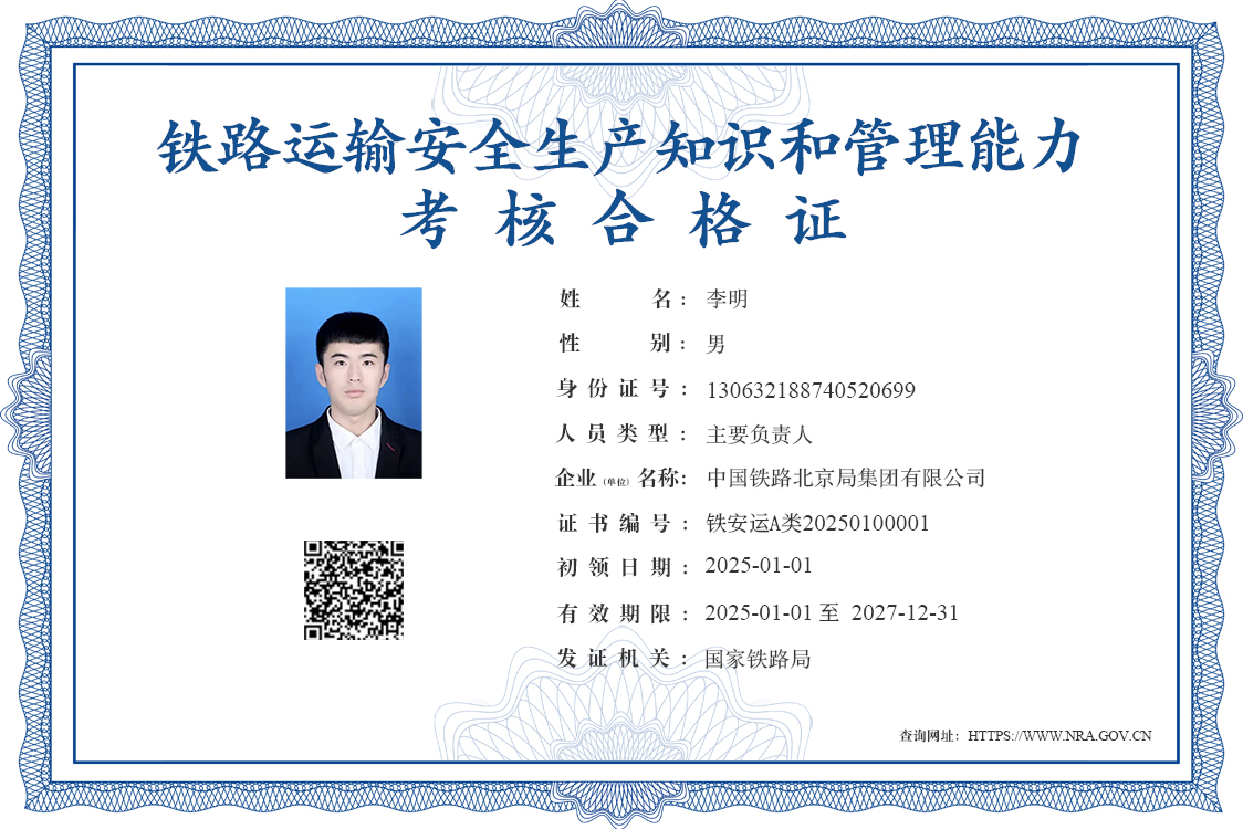 二、考核合格證為電子證書,由鐵路安管人員安全能力考核信息管理平臺自動生成,在全國范圍內有效。可通過掃描二維碼或登錄查詢網址核驗證書信息。