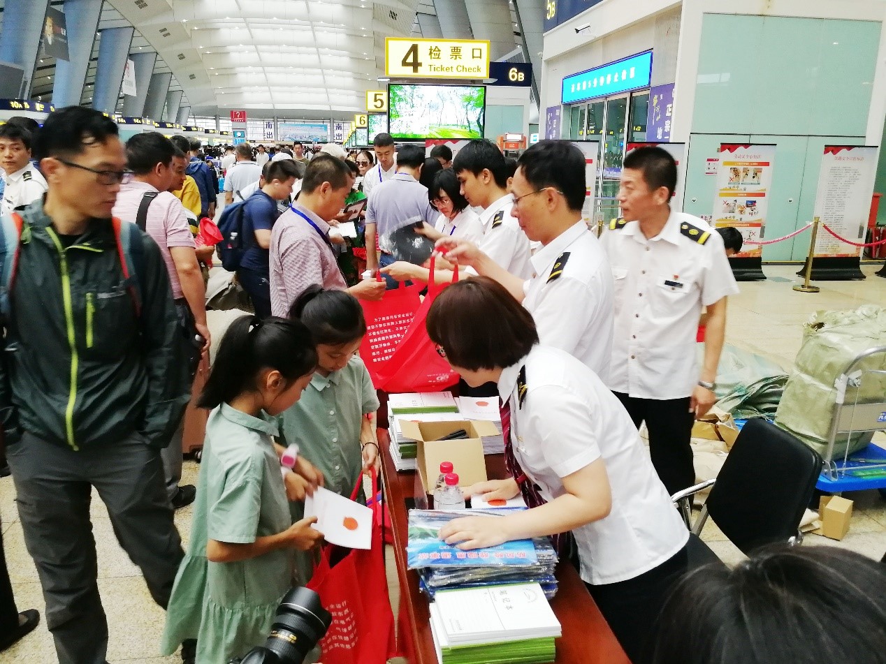6月16日,國(guó)家鐵路局、中國(guó)鐵路總公司、住房和城鄉(xiāng)建設(shè)部、交通運(yùn)輸部聯(lián)合組織全國(guó)鐵路2019年“6.16”安全宣傳咨詢?nèi)蒸呔V高鐵沿線環(huán)境綜合整治動(dòng)員會(huì),主會(huì)場(chǎng)設(shè)在中國(guó)鐵路總公司。國(guó)家鐵路局副局長(zhǎng)于春孝、鐵路總公司副總經(jīng)理劉振芳、應(yīng)急管理部安全生產(chǎn)綜合協(xié)調(diào)司負(fù)責(zé)人出席動(dòng)員會(huì)并講話。本次動(dòng)員會(huì)以“防風(fēng)險(xiǎn)、除隱患、遏事故”為主題,集中開展了面對(duì)鐵路職工及鐵路沿線社區(qū)、農(nóng)村、學(xué)校等地方和單位的愛路護(hù)路普法宣傳。